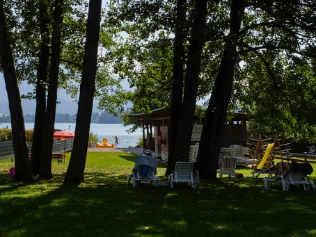 Sowohl die Sonnenanbeter als auch die Schattenliebhaber kommen auf Ihre Kosten. Unsere sehr großen, alten Bäume liefern angenehmen Schatten. In der flachen Uferzone fühlen sich Kinder, beim Plantschen und Spielen besonders wohl!