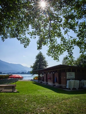 Wir bieten unseren Gästen exklusiv einen privaten Badestrand mit wunderschönem Seezugang. Dieser ist in nur zwei Minuten von unserem Haus erreichbar. Genießen Sie Entspannung und türkisblaues Wasser direkt am Faaker See.